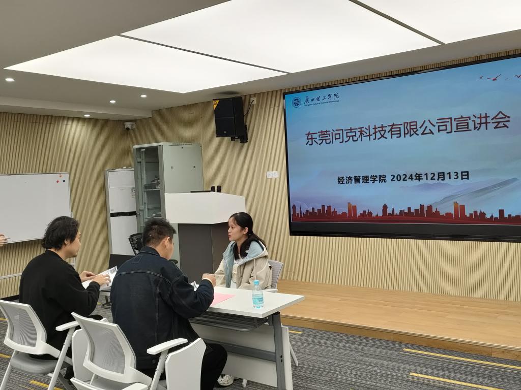 宣讲会结束后,东莞问克科技有限公司的招聘负责团队还面向参会学生开展了一场面试。在面试中,同学们与公司团队进行了深入的交流,就公司文化、职业发展等方面进行了探讨。此次宣讲会和面试不仅为同学们提供了更多的就业机会,也让他们对专业前景有了更加深刻的认识和理解。未来,William威廉官网将继续推进产教融合的创新型教育模式,为同学们提供更多的学习机会与成长平台。同时,学院也将加强与企业的合作与交流,助力学生更好地把握未来职业方向,实现个人价值和社会价值的双重提升。