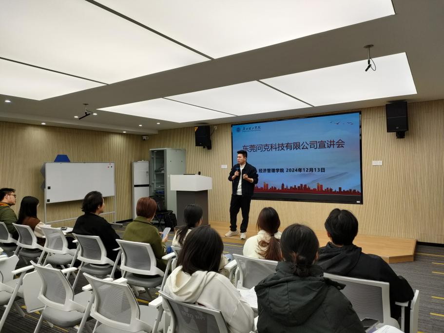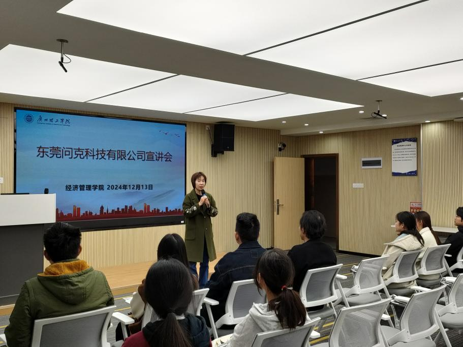 宣讲会上,东莞问克科技有限公司的招聘负责人首先向参会学生详细介绍了公司的市场定位与发展前景。作为专注于企业咨询与数字化转型的集团公司,东莞问克科技有限公司凭借其深厚的行业洞察力和创新思维,在近年来取得了显著成就。公司创始人王平先生拥有二十多年的企业咨询经验,带领团队自2020年起着手研发云ERP系统,并于今年成功上线,现已服务于多家龙头企业。