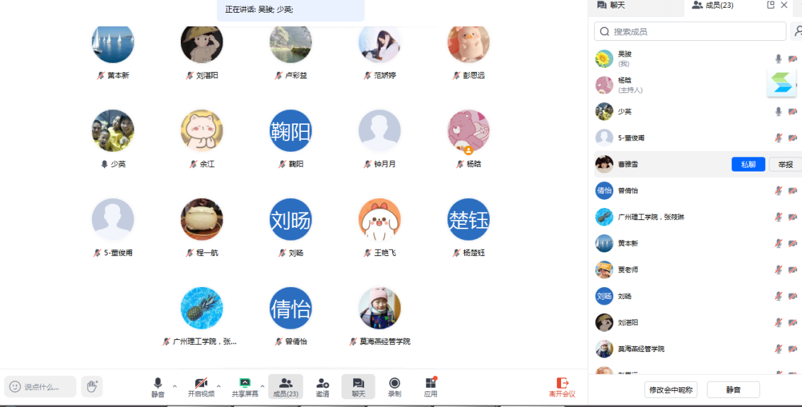 会上,教务干事卢彩益老师就全院毕业实习资料收集和校友邦工作做提醒,一是指导老师要关注毕业实习指导老师群通知,及时落实学校和学院的工作任务;二是指导学生规范撰写毕业实习申请,并做好审核工作;三是指导老师提醒学生在实习期间按时打卡;四是及时收集相关资料,按时提交;五是督促学生完成校友邦系统材料,并完成校友邦系统里指导老师审核工作。