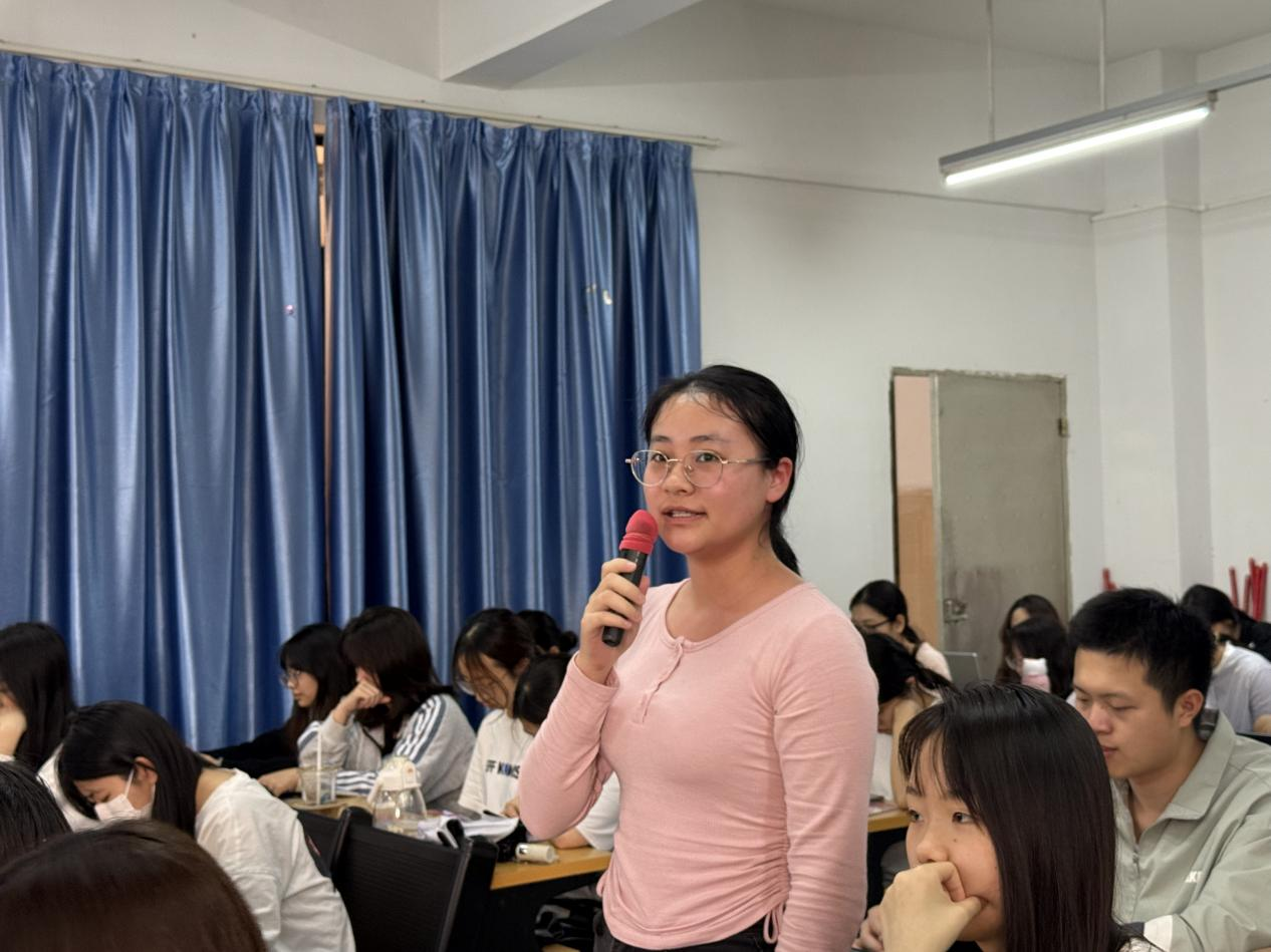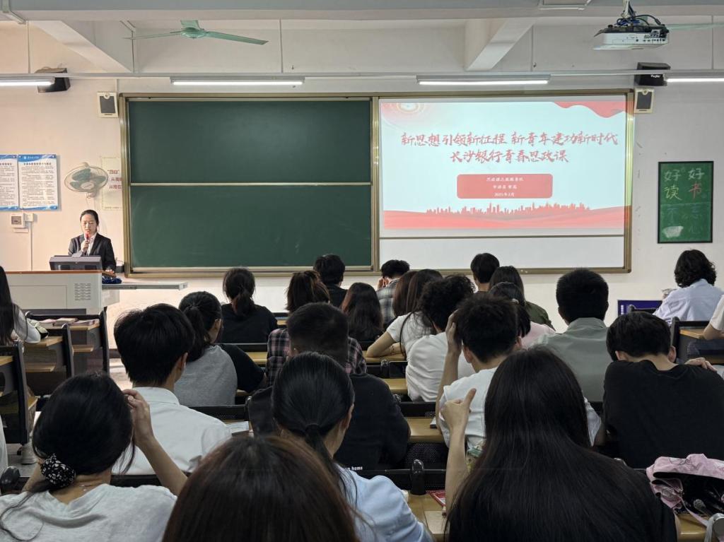 一场生动的思政课拉开了本次讲座的序幕。长沙银行青春思政课志愿服务队宣讲员贺茜从李大钊、小萝卜头等革命先辈的英雄事迹切入,引导同学们回顾百年间中国青年的觉醒与奋进;通过一个个鲜活的红色故事激励同学们传承“勤奋拼搏、永不言败”精神,牢记“学用心志、行知诚明”校训,争做新时代追梦人。互动问答环节,同学们积极踊跃,纷纷结合自身感悟,畅谈新时代青年担当起马克思主义传播者的思考与使命,现场气氛热烈非凡。