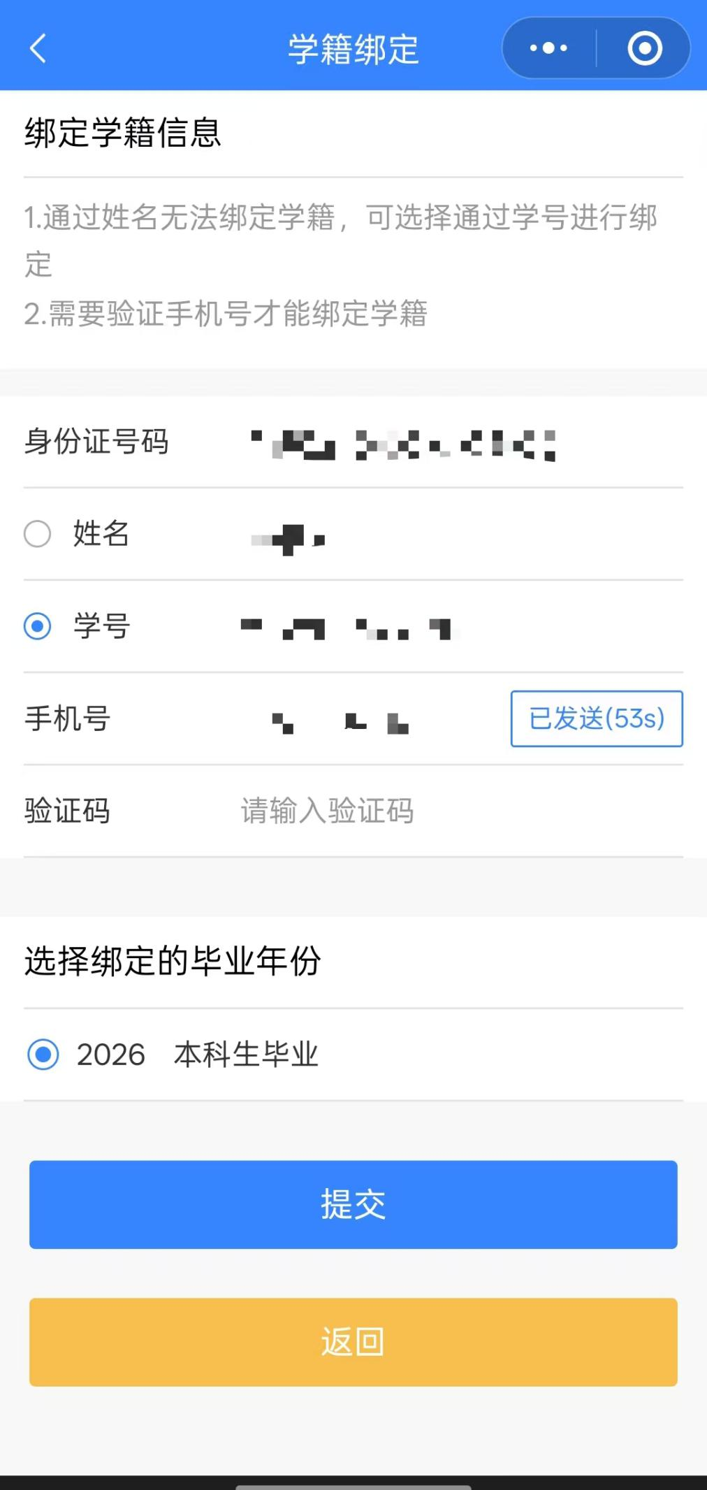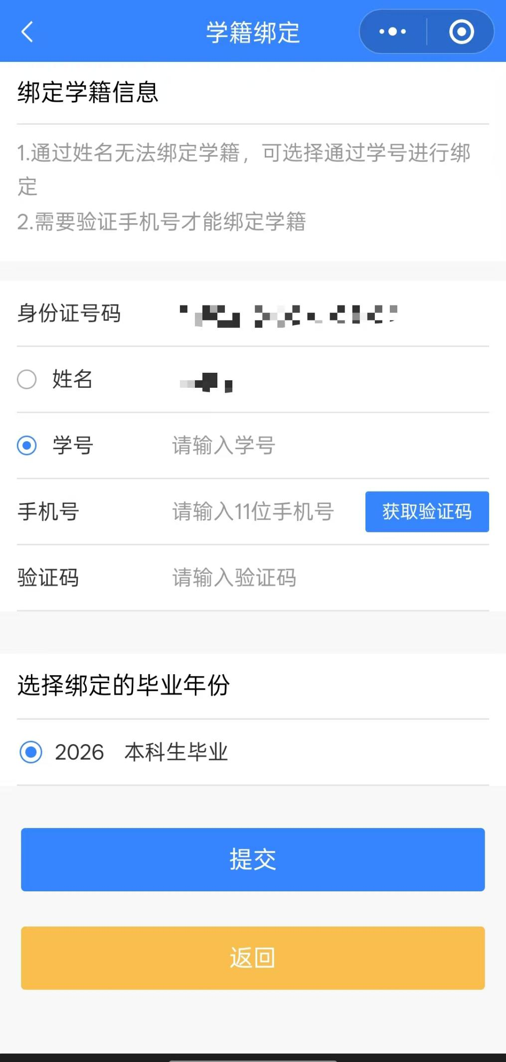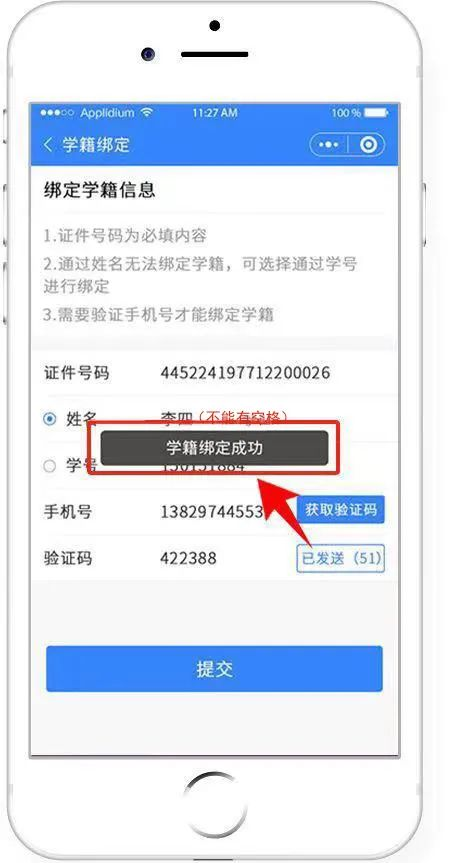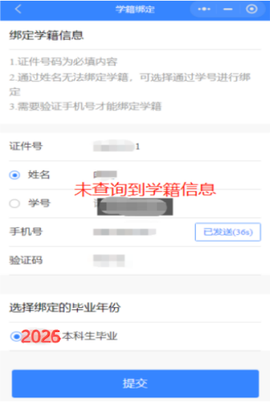 (3)若绑定学籍失败,请按提示重新绑定,成功后提交。