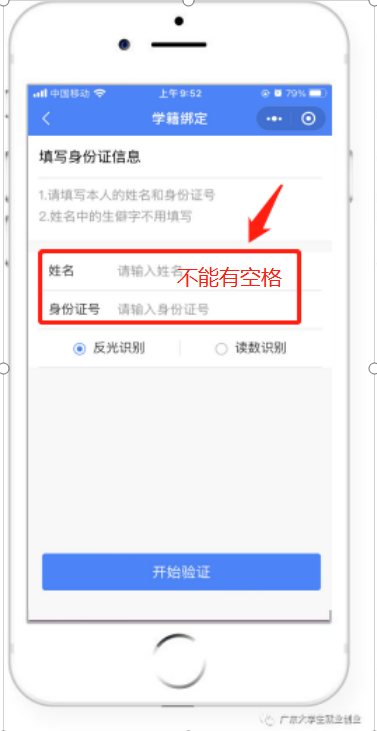 中国内地学生需要进行“实名认证+学籍绑定”;港澳台学生只需操作完成“学籍绑定”即可。 1. 中国内地学生 (1)进入“广东大学生就业创业”小程序,在首页左上角找到“用户登录”,点击后出现一个弹窗,出现两个选项:“中国内地学生”“港澳台学生”,选择“中国内地学生”选项。 (2)进入“学籍绑定”页面,点击“开始验证”,并完成人脸识别身份认证。