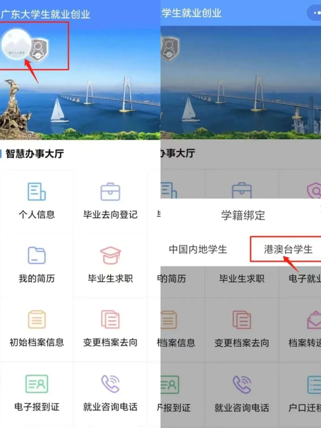 03.如尚未绑定身份信息的同学,请先绑定身份信息(流程见:@2026届毕业生,请绑定你的学籍并完善个人信息)推文,港澳台同学可根据提示指引进行身份信息填报及电子简历的撰写提交。