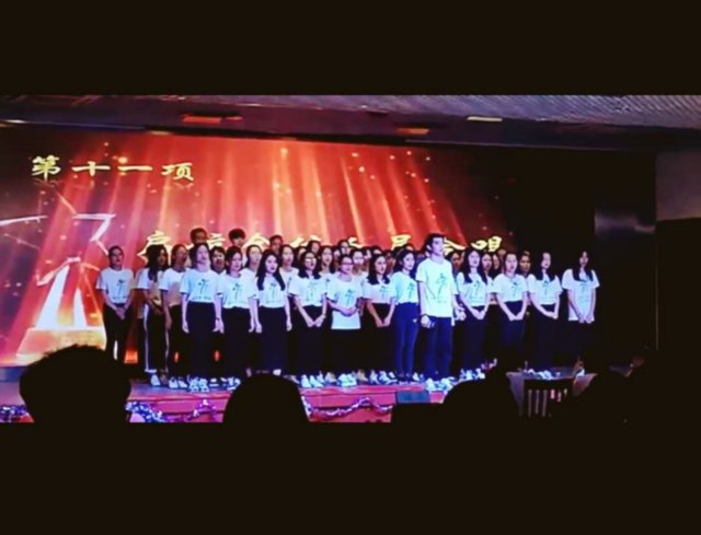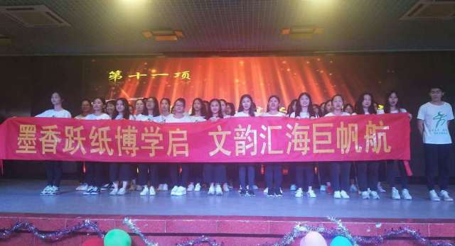颁奖晚会进行到此,已接近尾声。启航全体干事献上准备已久的大合唱《年轻的战场》。响亮的歌声回荡在耳边,一曲过后喊出对联口号:“墨香跃纸博学启,文韵汇海巨帆航”,代表他们对启航的热爱及期望。