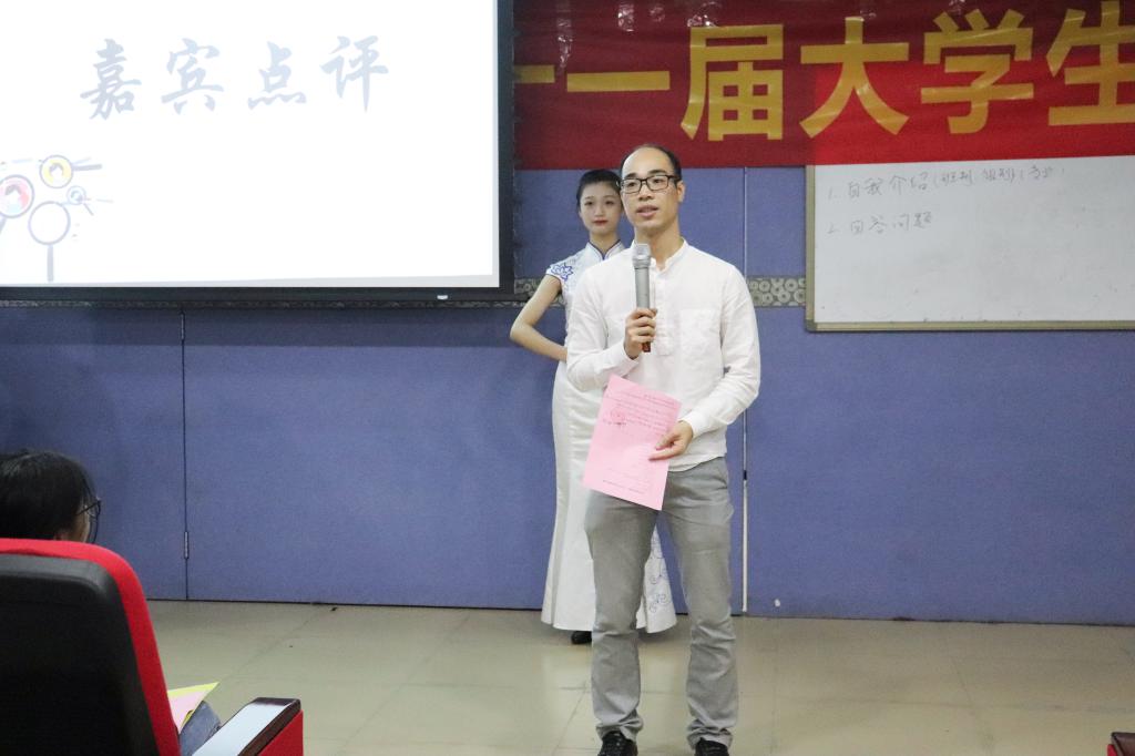 (通讯员 林颖琪 蔡佳彤)4月2日下午,我院在11栋701举办了以“规划生涯,点亮梦想”为主题的第十一届大学生职业规划大赛。莅临本次比赛的评委及嘉宾有办公室主任段妍君,实训中心主任张建龙,学工组组长颜冬果,团总支书记黄秋芬,就业指导老师、辅导员钟月月以及辅导员张宁,辅导员杨楚钰和辅导员谭智和。
