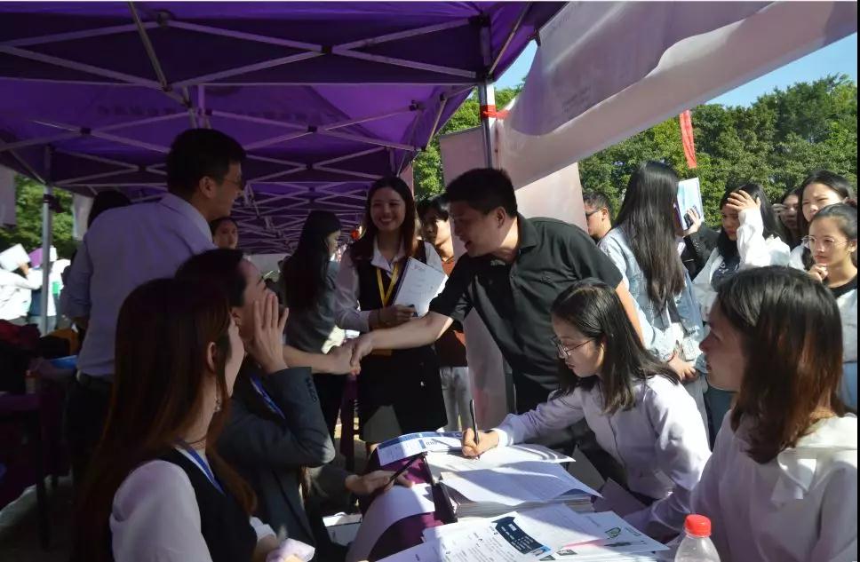 参会单位有400余家,涉及金融、教育、销售等领域。会场气氛热烈,应聘者都手持自己精心准备好的简历和自荐信,满脸自信地穿梭于人流之中,积极与招聘人员交流,主动了解用人单位的情况。招聘会不只是毕业生的主场,我院2017级学生也积极参与其中,前去了解自己的目标行业定位,了解企业单位的人才需求,从而以此为目标锻炼相应的能力,提高自己的就业竞争力。