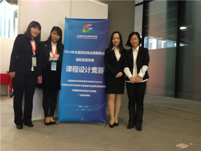 台上一分钟,台下十年功。由教师吴霜、刘小丽、许旭和李顺萍组成的教师代表队经过精心准备、认真筹备,在此次竞赛中夺得全国一等奖。由杨连彪、杨嘉荣、翟金鹏、范俊杰、陈颖霞、梁帼英、满文意和康趣茵8名学生组成的学生代表队,在吴霜、许旭两位老师的指导下,从情景剧、英语口语、模拟洽谈、专业知识等方面进行严格的监督、培训,参赛学生积极参与,外出拍摄制作视频,刻苦锻炼英语口语;队员间通过精诚合作在比赛中,凭借良好的礼仪、得体的展示、流利的口语沟通及娴熟的外贸业务能力获得了评委老师的好评,夺得本次竞赛全国二等奖。