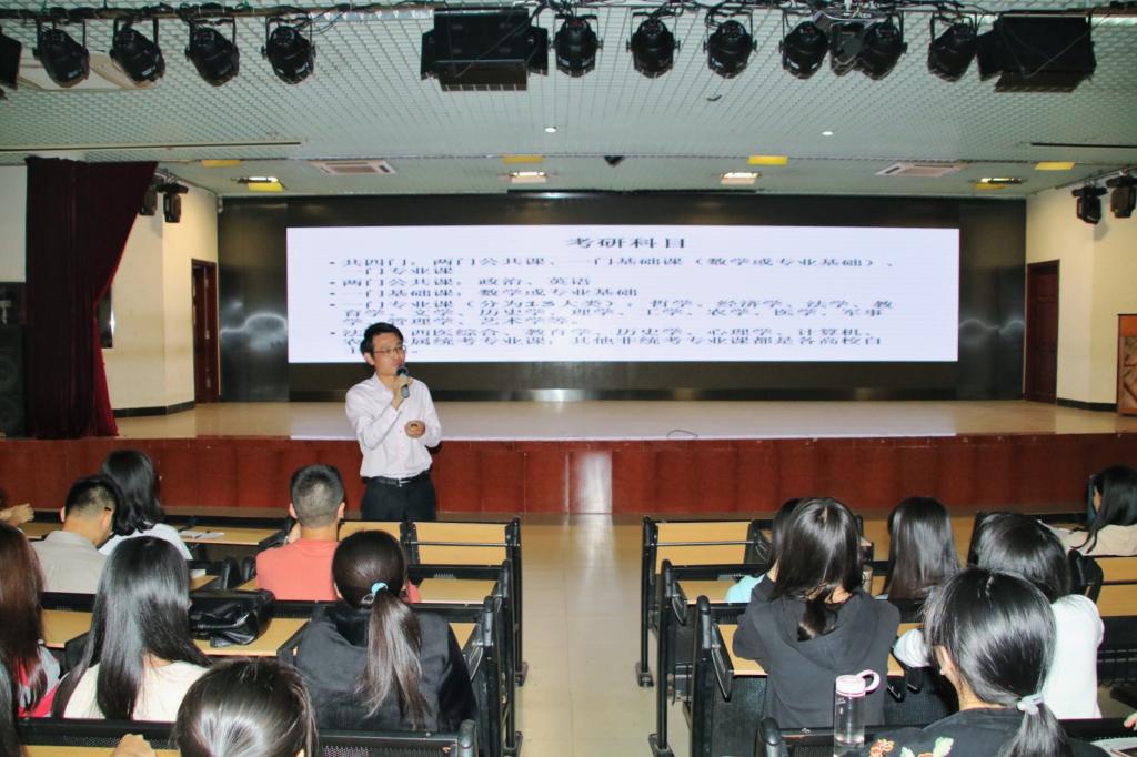 张志红强调了考研的意义和重要性,鼓励在校大学生要树立远大目标。为提升自身价值,在未来的就业竞争中取得优势,要争取各种机会继续深造,积极参加考研。张志红同时表示,为进一步推进我院考研工作,学院除本次讲座外,还将组织多场考研经验交流会,邀请往届已考上研究生的同学回校进行考研经验的交流与分享,为广大考研同学搭建资源与信息平台。