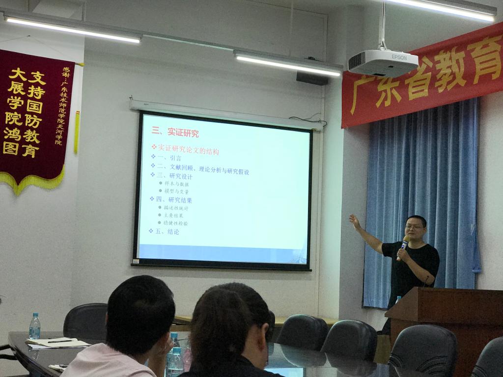 (通讯员 张建龙、王钰巧)6月14日下午,我院2018年科研专题讲座在11-108会议室顺利举行,学院全体教师和对科研有兴趣的学生代表参加聆听了讲座。讲座由学院副院长张志红主持,广东财经大学会计学院副院长雷宇教授受主讲。