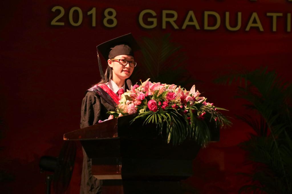 伴随着庄严的国歌,毕业典礼正式拉开帷幕。典礼上,毕业生纷纷献花致敬老师、父母。随后,毕业生代表姚冰燕、家长代表罗伟、教师代表董长华依次上台发言。毕业生代表姚冰燕回顾了大学四年时光对自己成长的积极影响以及表达了对学校、老师、父母的感谢。家长代表罗伟表示,作为家长,看到孩子在天河学院经过四年学习与成长后的变化,感到欣慰与感动,并叮嘱毕业生们要心存感恩,回报母校、回馈社会。教师代表董长华希望毕业生们要将自己的梦想与中国梦紧密结合,创造社会价值,毕业后也不忘恩师、不忘母校。