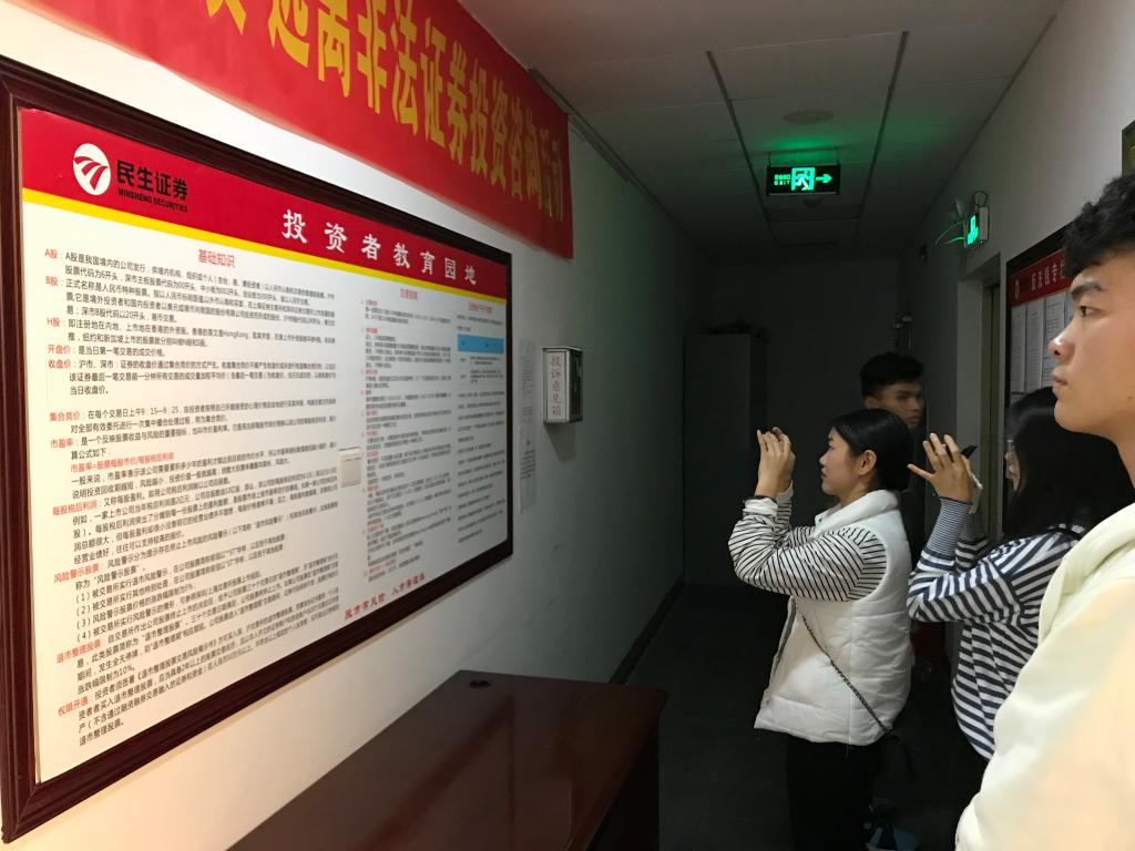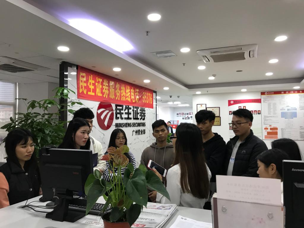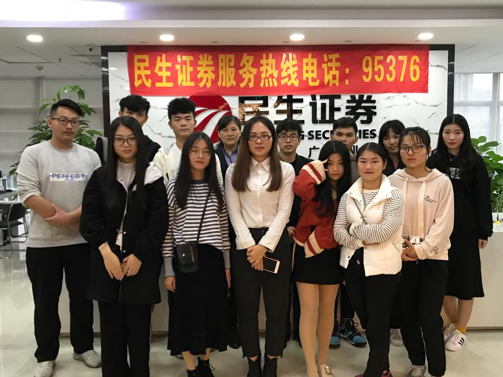 (通讯员张建龙)12月20日下午,为了更好的了解证券行业,增强学生对职业岗位的认知,我院学生代表在张建龙老师的带领下,前往校外实践教学基地——民生证券股份有限公司广州金穗路营业部参观学习。