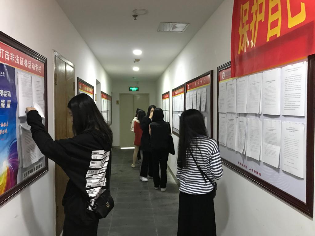 在营业部投资顾问林耿芳的带领下,同学们走进了公司办公室,参观了各部门的工作环境,严谨、勤奋、温馨的公司文化,给同学们留下深刻印象,也使同学们感受到良好的技能和团队意识同样重要。林耿芳师姐边走边讲解,为同学们详细介绍了营业部的组织架构和各部门的职能,还带领同学们来到学习走廊,参观了投资者教育园地,让同学们学习到了许多证券投资知识,认识到了投资理财的重要性。