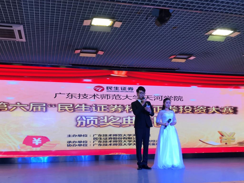(通讯员 谢震)12月27日下午,我院在六栋学术报告大厅隆重举行第六届“民生证券杯”证券投资大赛颁奖典礼,表彰在大赛中取得优异成绩的学生,激励同学们积极参加学科竞赛,提高综合素质。民生证劵广州营业部总经理杜永红、综合部主管李欣、投资顾问助理林耿芳,我院副院长张志红、党总支书记、副院长谭飞、副院长陈天勇、实验中心主任张建龙出席本次颁奖典礼。