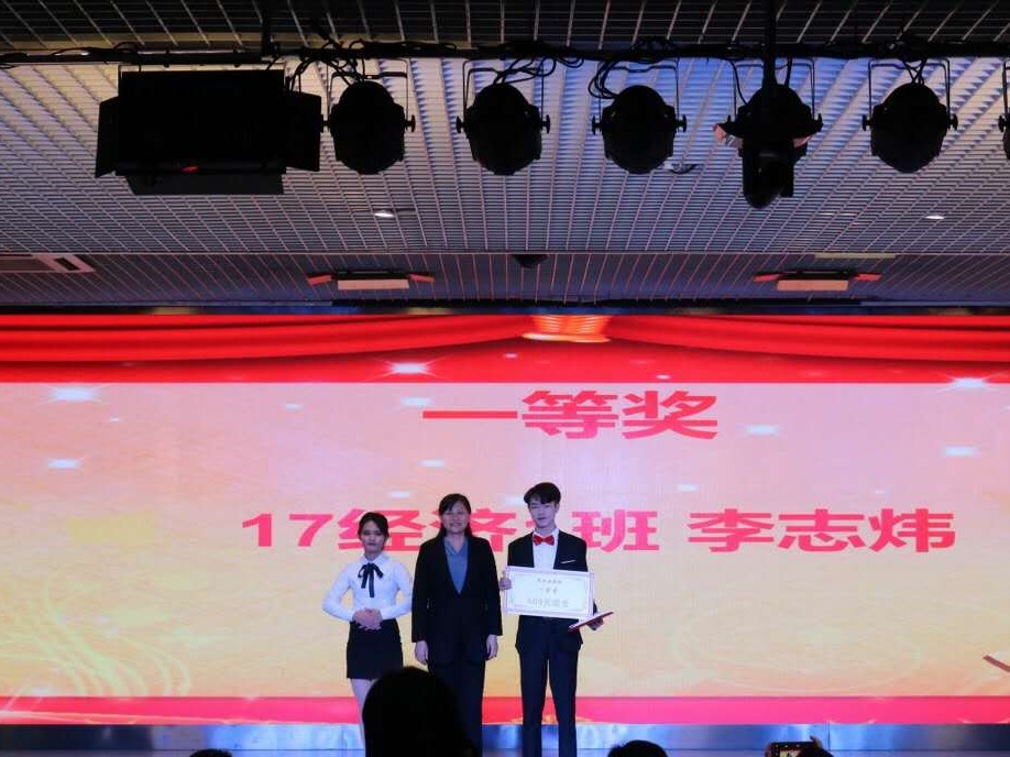 典礼在一段视频中拉开帷幕,视频回顾了大赛的全过程。紧接着金融学术协会会长梁健锋作了本次大赛的总结,实盘模拟投资的形式吸引了全校500多名学生参与。紧接着主持人公布本次比赛的结果,李志炜、伍映基、方芮涵等16名选手获奖,冠军由17经济1班李志炜以27.05%的收益率摘得,民生证券广州营业部杜永红总经理、综合部主管李欣、我院副院长张志红、党总支书记、副院长谭飞分别上台为获奖选手颁发了荣誉证书和奖金。颁奖结束后,大赛冠军李志炜同学发表了获奖感言并分享了自己的比赛经验。