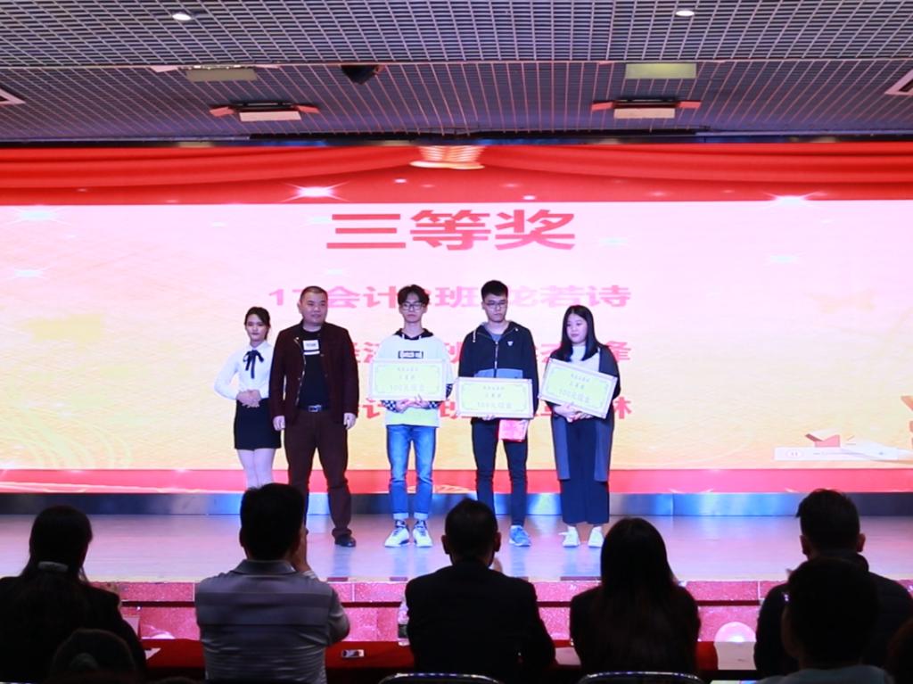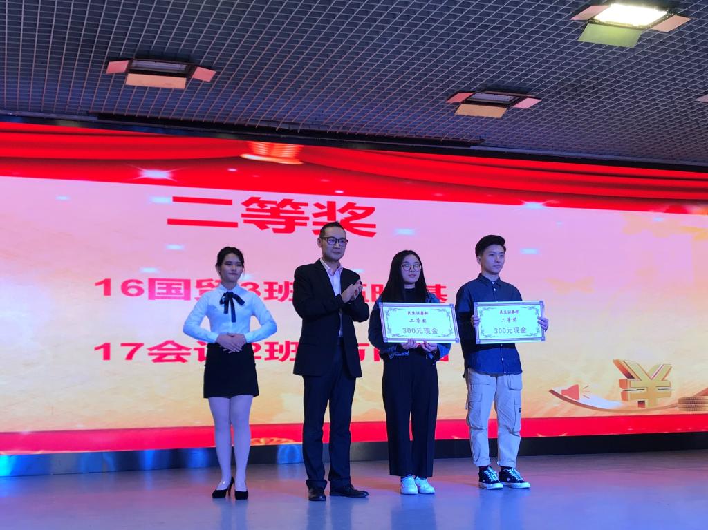 典礼最后,副院长陈天勇讲话,肯定了同学们在比赛取得的成绩,并感谢民生证券对比赛的大力支持。接着讲述了近一年来我院学科竞赛工作所取得的成绩, 2018年我院除民生证券杯外还组织了6项学科竞赛,共有653名学生参加,22名学生获省级以上奖项10余项,其中国际贸易竞赛再次荣获全国一等奖,财会职业能力大赛获全国三等奖。并对学生寄予了新年期望,希望同学们在新的一年中积极参加各类学科竞赛,激发自身潜能,切实提高自身专业素质。至此,第六届“民生证券杯”证券投资大赛圆满落幕。