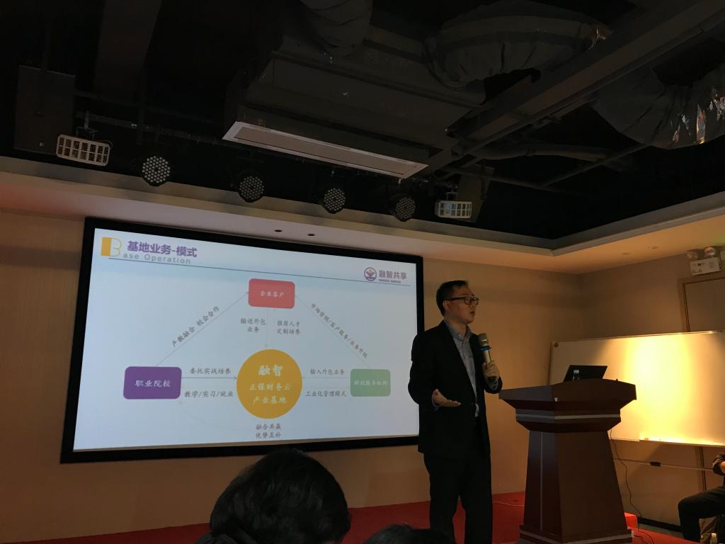 (通讯员 张建龙)3月8日,由厦门网中网软件有限公司与广州融智共创科技有限公司联合打造的“融智共享·正保财务云产业基地(广州)”正式揭牌成立,我院陈天勇副院长、张建龙老师受邀参加启动会,见证了产业基地的成立,并与各院校就会计类专业教育改革创新与产业转型升级相融合的人才培养模式进了交流探讨。