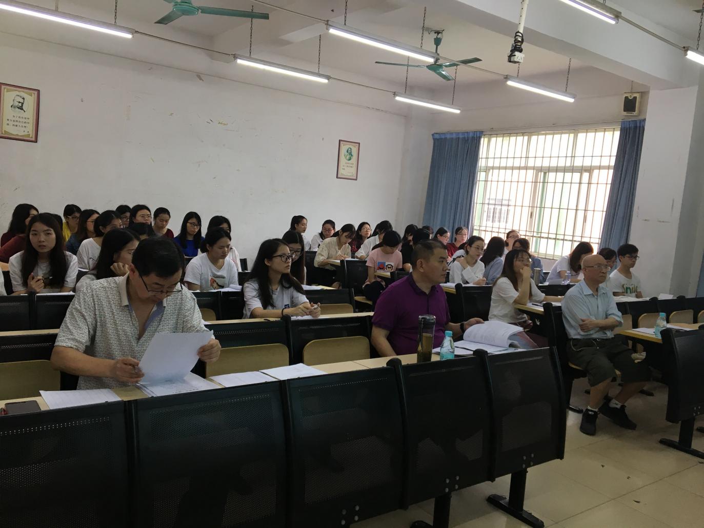 论文答辩分两轮。第一轮为一辩,在11日和12日分两天进行,分为学生PPT自述、评委提问、学生应答、评委评议和评分等环节。答辩现场,学生首先就毕业论文作简单陈述,并积极回答评委提问。评委老师认真审阅,并对同学们的回答情况进行认真点评,在指出文章亮点和不足的同时,对同学们的毕业论文提出了进一步修改的意见与建议,答辩工作有序开展,现场秩序井然,严肃而融洽,学术氛围浓厚。经过两天的答辩工作,所有学生答辩结束,答辩小组主席向同学们宣布答辩结果,并督促学生按要求认真完成论文提交前的修改完善工作。