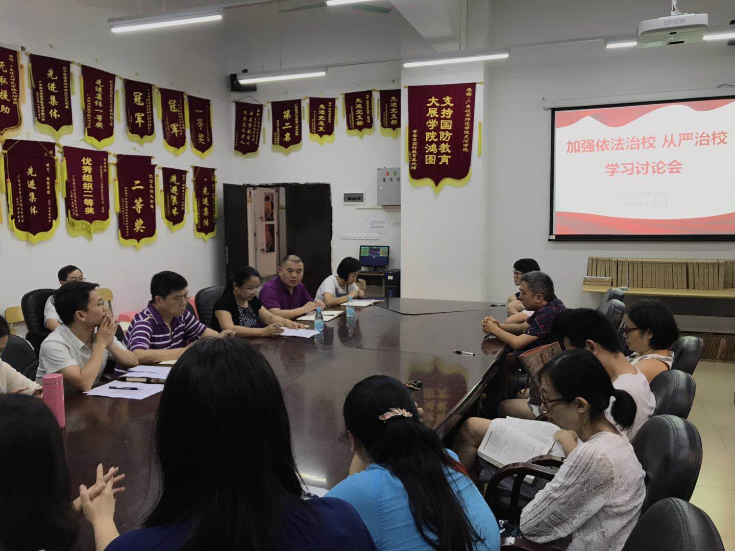 (通讯员 张建龙)6月6日下午,为牢固树立依法治校的办学理念,不断增强教师法治观念,我院组织召开专题学习研讨会,学习讨论学校中层干部会议精神,传达学校关于加强依法治校从严治校的决定,研究制定工作方案和措施。全体教师参加了此次学习研讨会。
