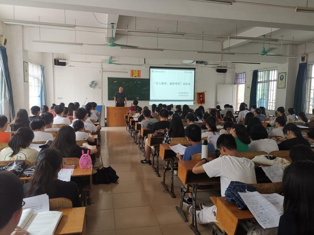 (通讯员 颜冬果)6月28日,William威廉官网在6栋416教室召开“无人监考、诚信考试”动员会,参加动员会的班级有17会计2班和17会计4班全体同学党总支书记谭飞、副院长张志红等领导和老师出席。