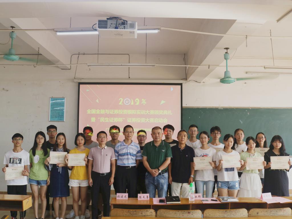 (通讯员 张建龙)10月11日下午,我院在7-318举行全国金融与证券投资模拟实训大赛颁奖典礼暨民生证券杯启动会。国泰安广州分公司副总经理莫业锋、我院副院长张志红、副院长陈天勇、经济系主任倪江崴出席了活动。