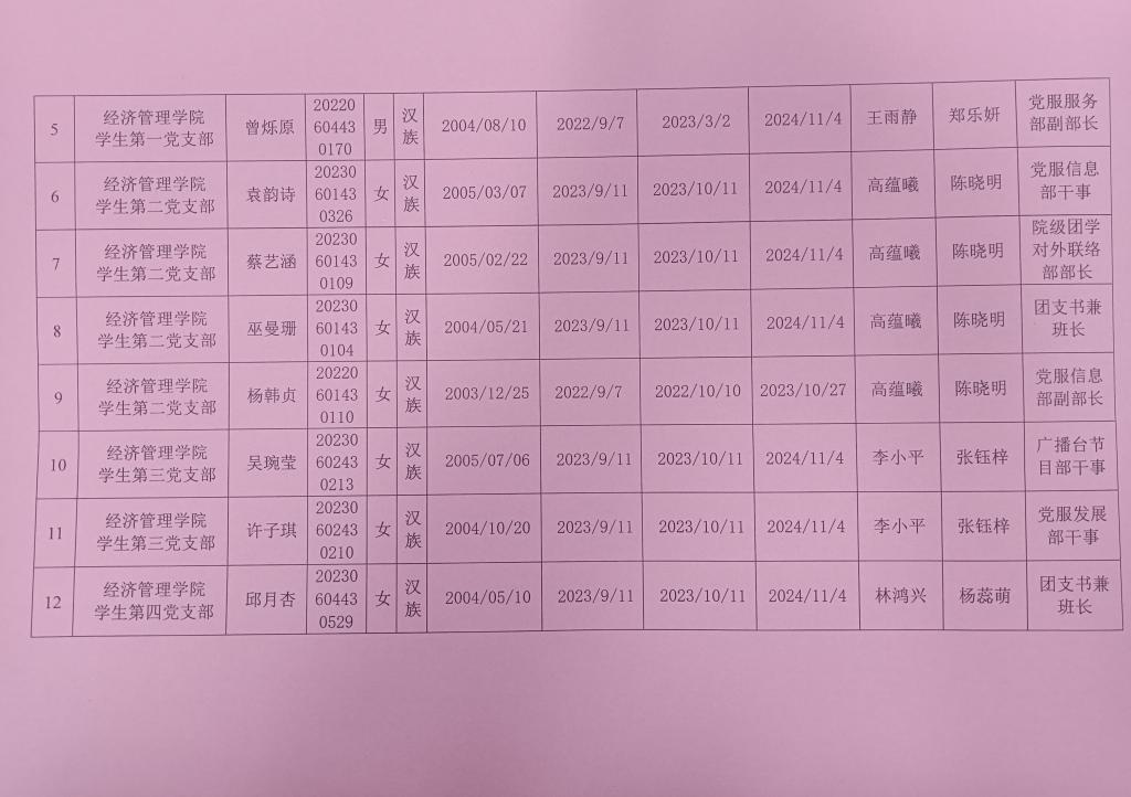 经党支部、党总支审查,拟将刘亦婷等12名同志发展为中共预备党员,为增强发展党员工作的透明度,强化群众的监督作用,减少工作失误和偏差,确保党员发展工作质量,根据发展党员工作有关要求,现将具体情况公示如下。