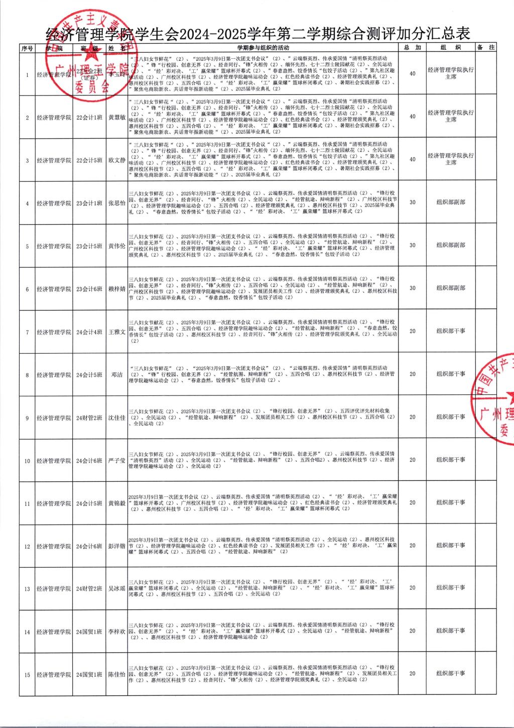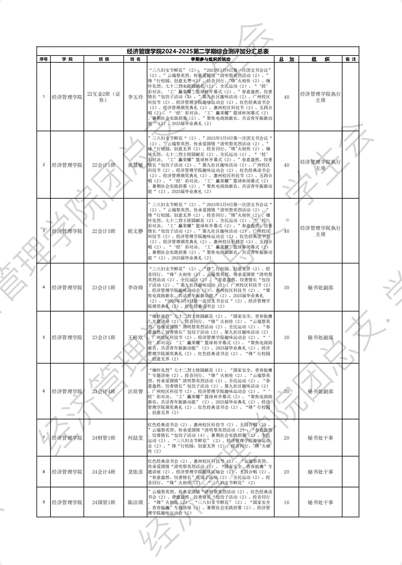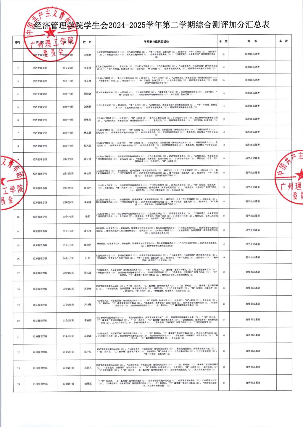 (通讯员:黄颖怡、戴红韶)2024-2025学年第二学期综合测评结果已审核完毕,现予以公示!