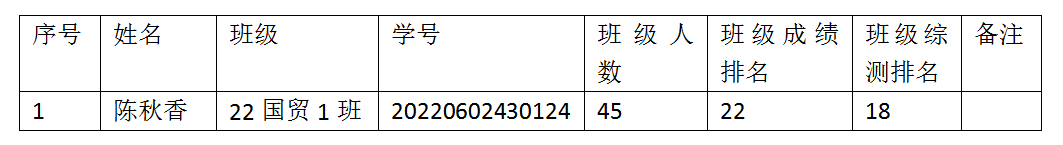 经复核,以下1名同学因不符合国家励志奖学金基本评选条件,现取消其参评资格,相应名额予以收回: