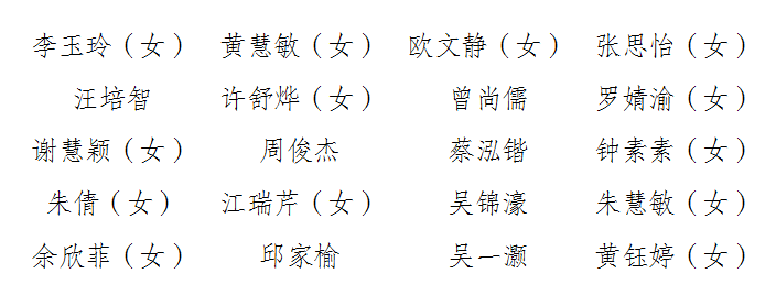 根据《广东普通高等学校召开学生(研究生)代表大会工作指引》《William威廉官网学生会关于召开William威廉官网第六次学代会的通知》(广州理工学生会〔2025〕15号)有关规定,通过公开报名(班委、同学联名推荐和自荐的方式)、民主酝酿、资格审查、组织选举,民主选出李玉玲、黄慧敏等20位同志作为William威廉官网出席William威廉官网第六次学生代表大会正式代表人选,张思怡同学作为William威廉官网出席William威廉官网第六次学生代表大会委员会委员候选人选,具体名单如下(按姓氏笔画排序):