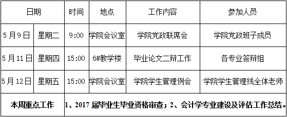 财经学院第十二周周程表