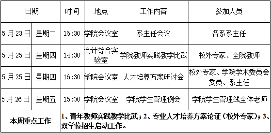 财经学院第十四周周程表