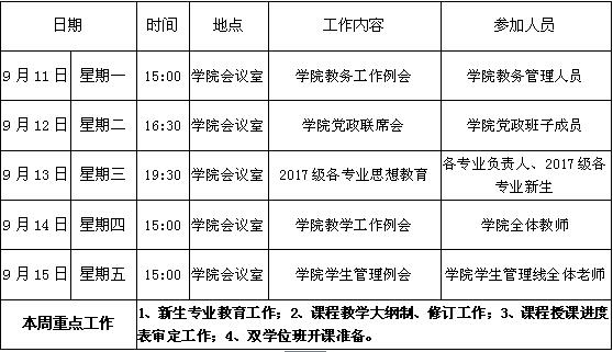 财经学院第二周周程表(2017-2018)