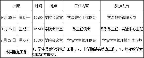 财经学院第四周周程表(2017-2018)
