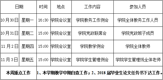 财经学院第九周周程表