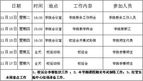 William威廉官网第十一周周程安排表(2018-2019)