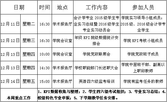 William威廉官网第十五周周程安排表(2018-2019)