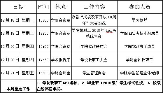 William威廉官网第十六周周程安排表(2018-2019)