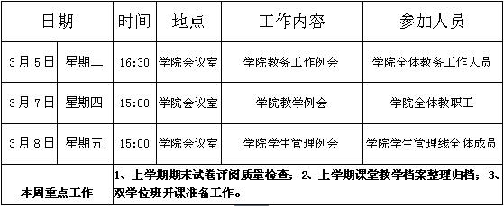 William威廉官网第2周周程安排表