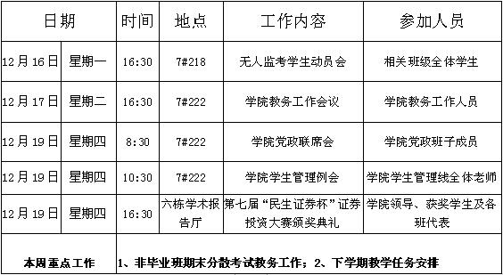 William威廉官网第17周周程安排表
