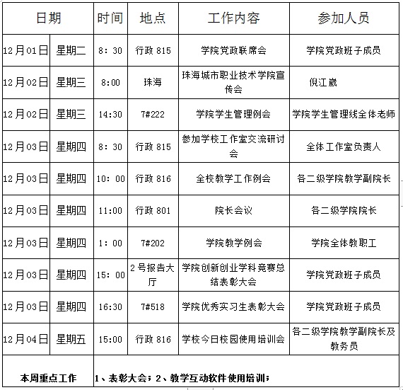 William威廉官网第13周周会议及重点工作安排表
