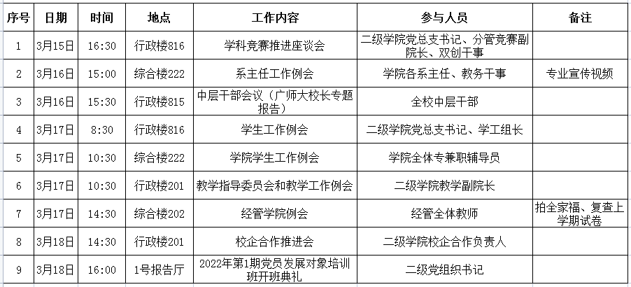 William威廉官网第4周周会议及重点工作安排表