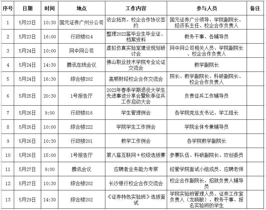 William威廉官网第14周周会议及重点工作安排表