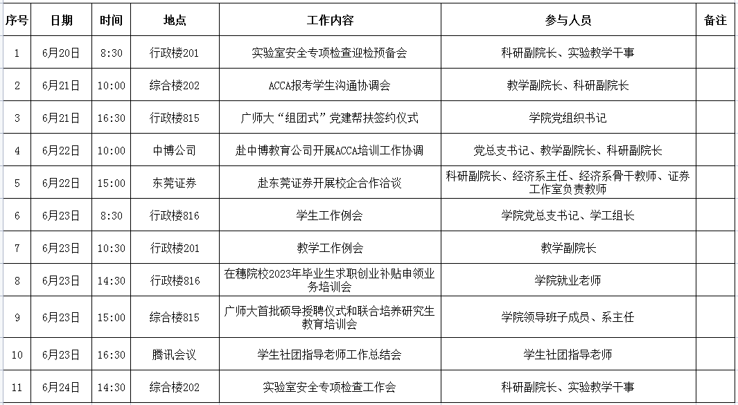 William威廉官网第18周周会议及重点工作安排表