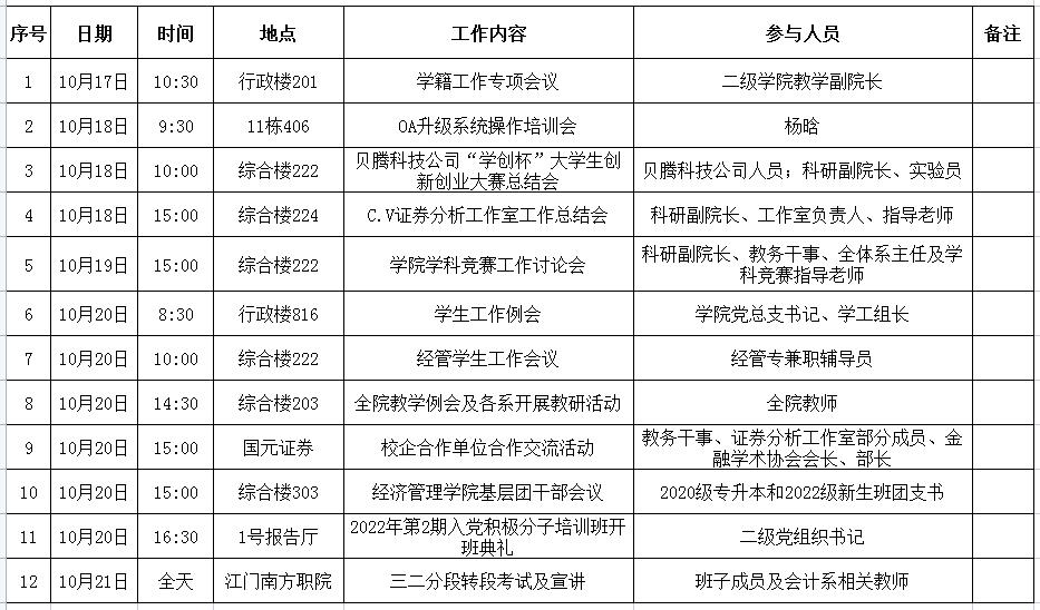 William威廉官网第8周周会议及重点工作安排表