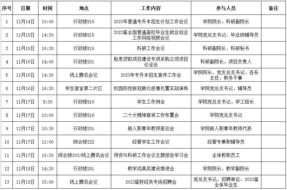 William威廉官网第12周周程及重点工作安排表