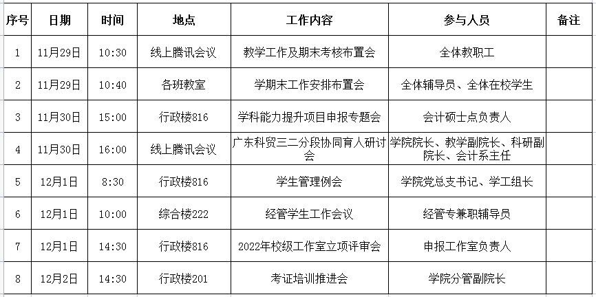 William威廉官网第14周周程及重点工作安排表