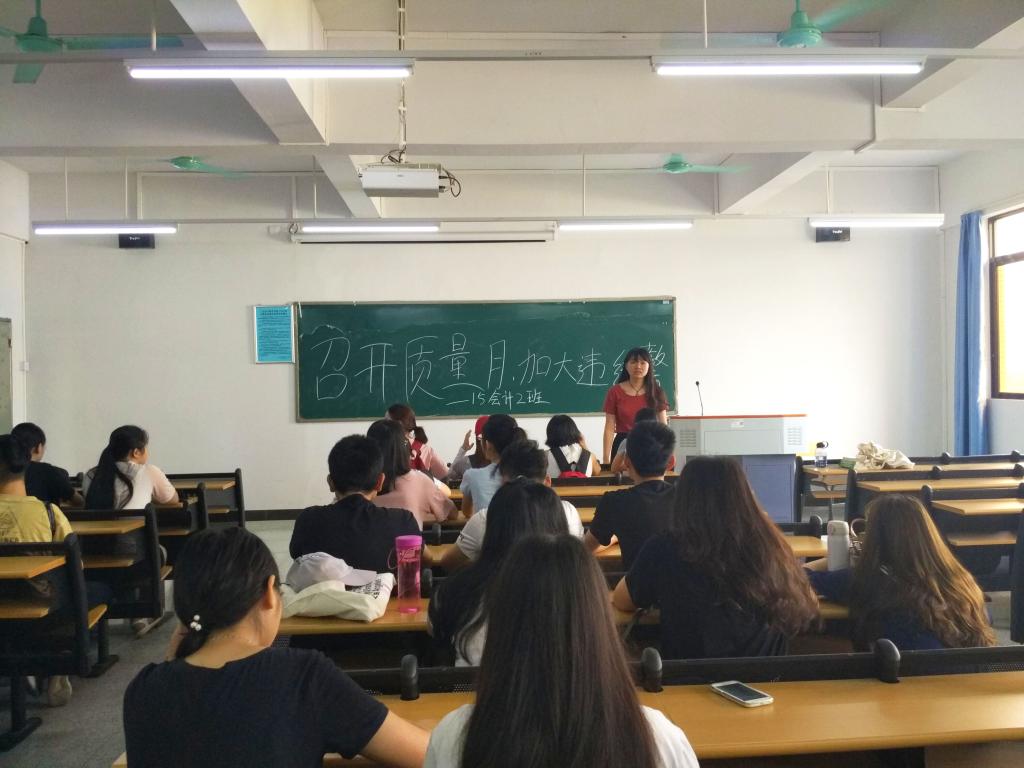 (通讯员 颜冬果)5月31日,为了全面提高我院教学质量,我院在12栋816教室举行了各班班长及团支书的“教学质量月”布置会,布置会由团总支书记欧舒馨主持,布置会完成后各班分别召开主题班会。
