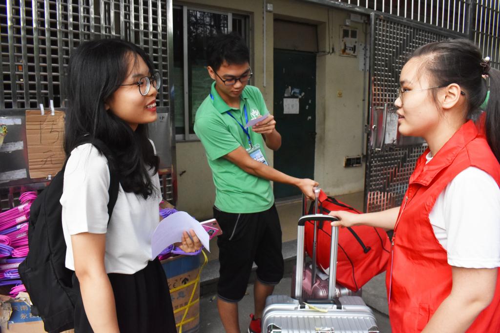 上午6:30,迎新工作人员早早迎候在综合楼。新生陆陆续续前来报到,他们略带青涩的脸庞上流露出对大学生活的憧憬。大多数新生在家人的陪伴下一起走进大学,但也有不少新生不依赖父母,选择独自背上行囊踏上大学之旅。校园里,都能看到我院迎新团队工作人员们热情地引导,指路带路、搬运行李等。