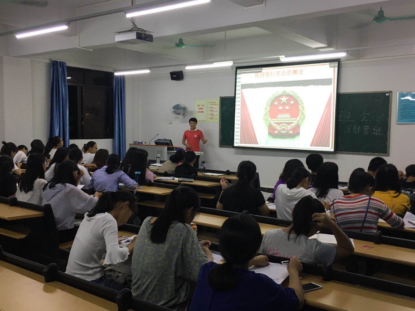 (通讯员 冯益辉)10月9日晚,18财管班根据学校文件要求,在12栋901室圆满完成了宪法学习。会中,主持人学委冯益辉以通俗易懂的方式讲述了宪法的主要内容,同学们也较快地吸收了课件中的精华,初步树立了宪法意识。