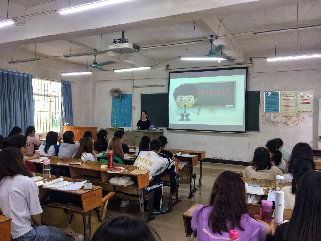 班会主要围绕着“什么是宪法、宪法的内容、公民的基本权利和义务有哪些”三个方面进行介绍。首先,林琳对我国现行宪法进行概述,从第一部宪法的产生到第四部宪法的通过和修订,让大家对我国法律不断修订完善的不易予以敬佩;其次,为大家展示了我国的国旗、国徽、国歌、首都,让这些代表中国的特征牢记大家心中,并对宪法存有敬畏之心;最后,给同学们列出了公民应该履行的义务和权利,并表示在享受权利的同时也应该履行相应的义务。同学们仔细聆听林琳的介绍,深刻认识到了遵守宪法的重要性,也意识到我们身为一名公民需要履行的义务和享受的基本权利。由于法制观念淡薄,法盲现象严重,在不知什么是违法犯罪的情况下触犯刑律的事也屡有发生;而因缺乏法律意识,在自身受到侵害可以运用法律武器保护自己时却不会保护的人也确有不少。所以我们青少年要学法,知法和守法,更要学会用法。
