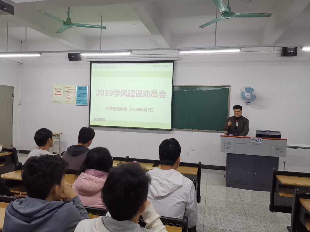 (通讯员 林淑贞)3月7日下午,我院在12栋816召开学风建设动员会,落实我校2019年工作,贯彻胡社军校长关于全面促进校风转变,促进我院学风全面好转的精神。党总支书记谭飞、副院长陈天勇及全体辅导员出席动员会,全体在校班级班长和纪委参加。学工组长颜冬果主持。